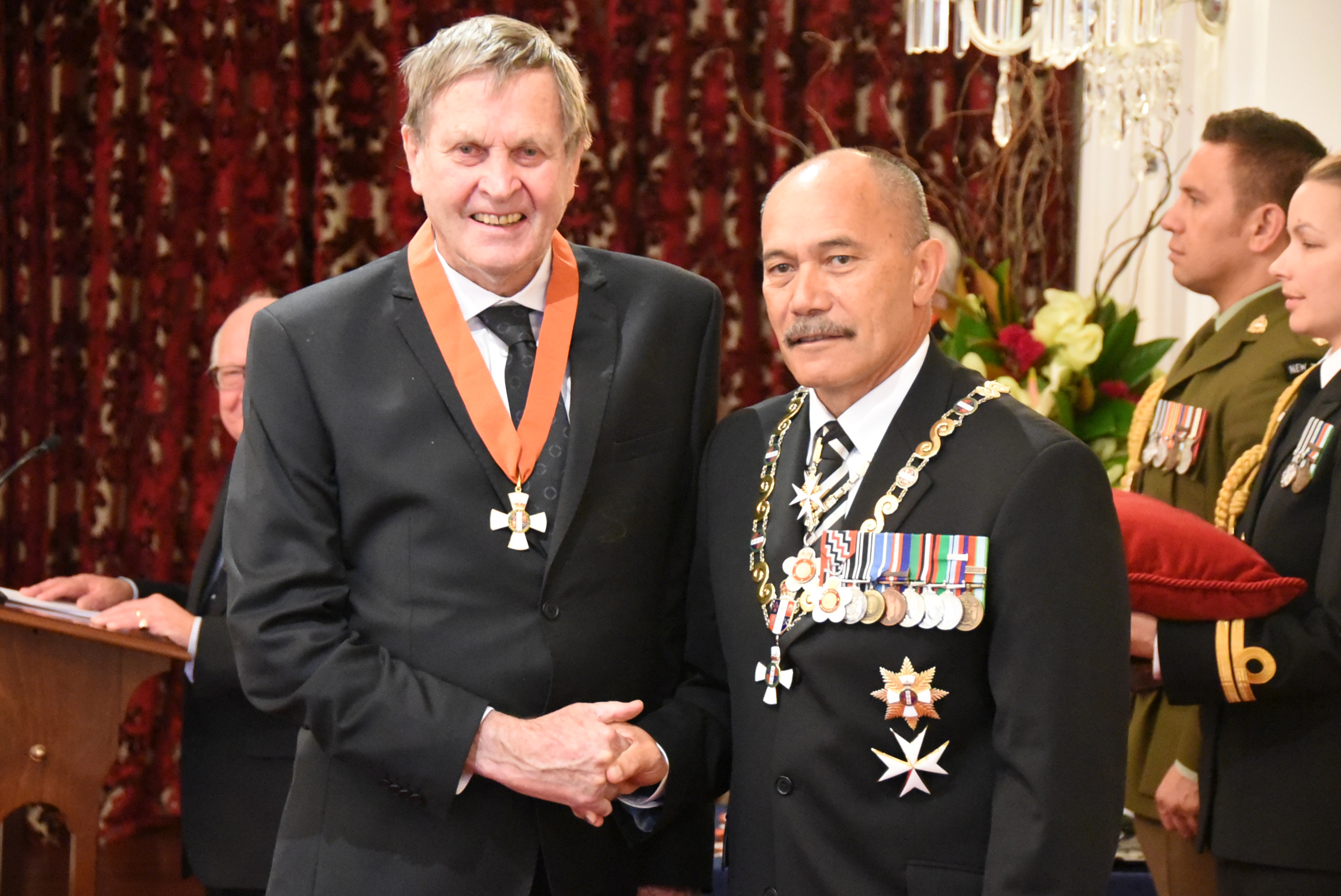 John Lee in 2016 with then Governor-General The Rt Hon Sir Jerry Mateparae, receiving his Companion to the New Zealand Order of Merit for services to business and Tourism.