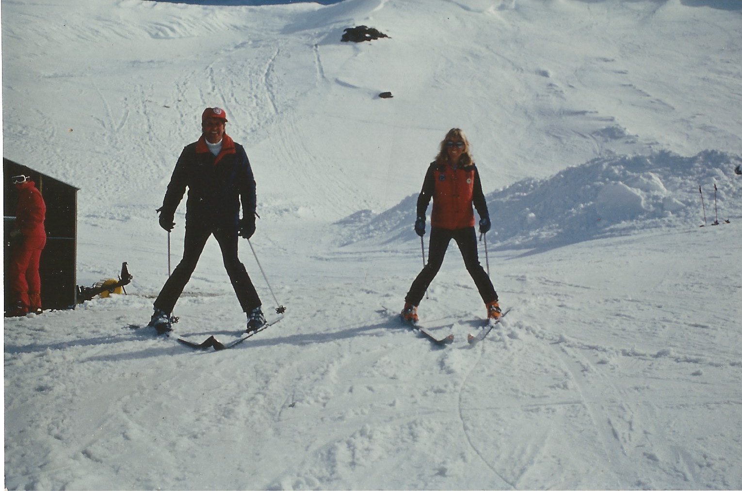 John and Mary (centre) on opening day at Cardrona Alpine Resort in 1980.