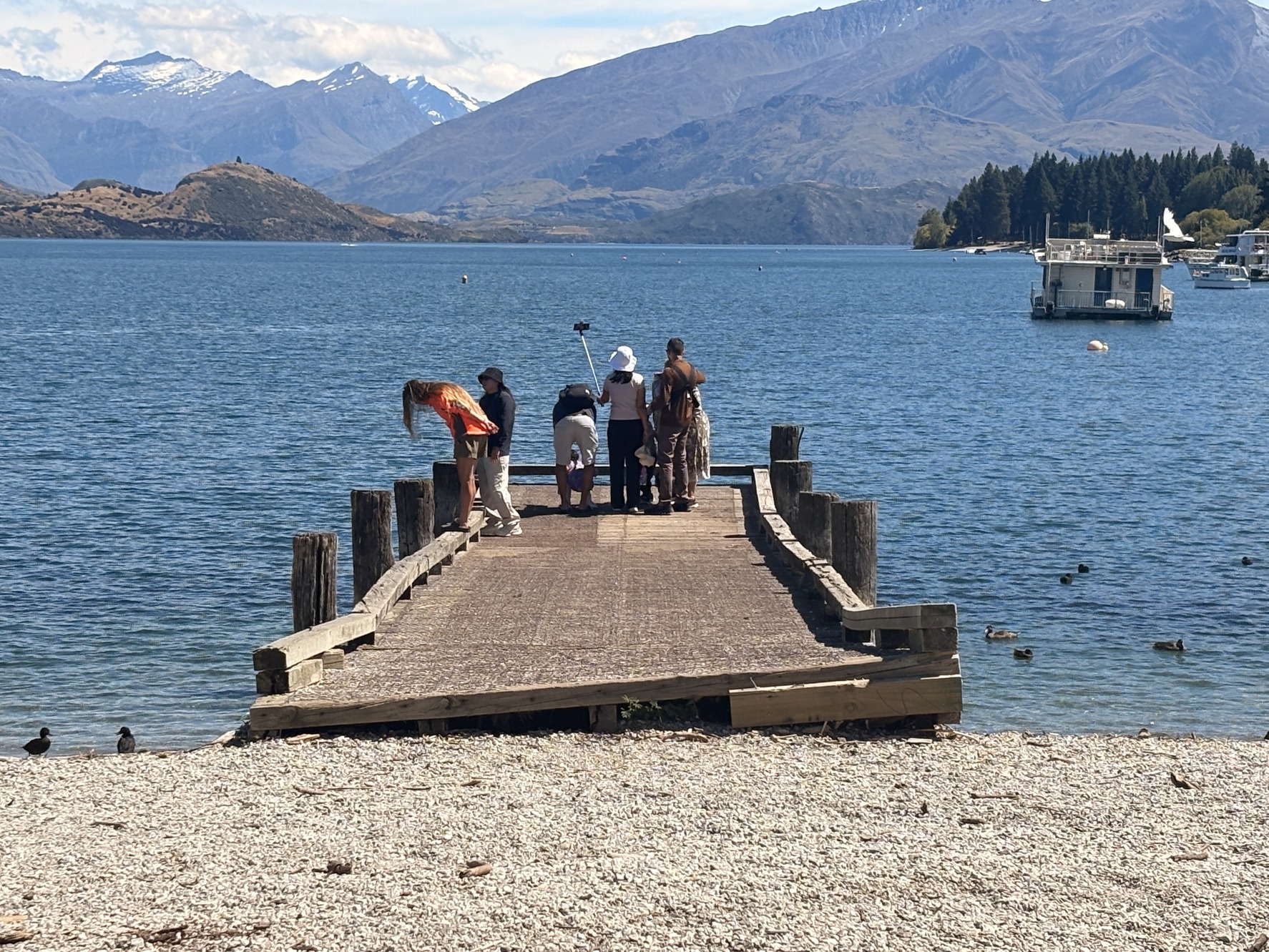 Tourists taking photos at the Wānaka jetty on Thursday (February 12). PHOTO: Wānaka AppThe Wānaka Upper Clutha Community Board (WUCCB) has made a strong bid to retain the current Wānaka jetty until its replacement is completed.