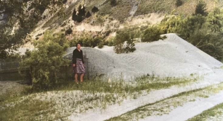 Wind-borne lake sediment at John Creek circa 1978-80 following lowering of Lake Hāwea’s level in 1976. PHOTO: Campbell collection