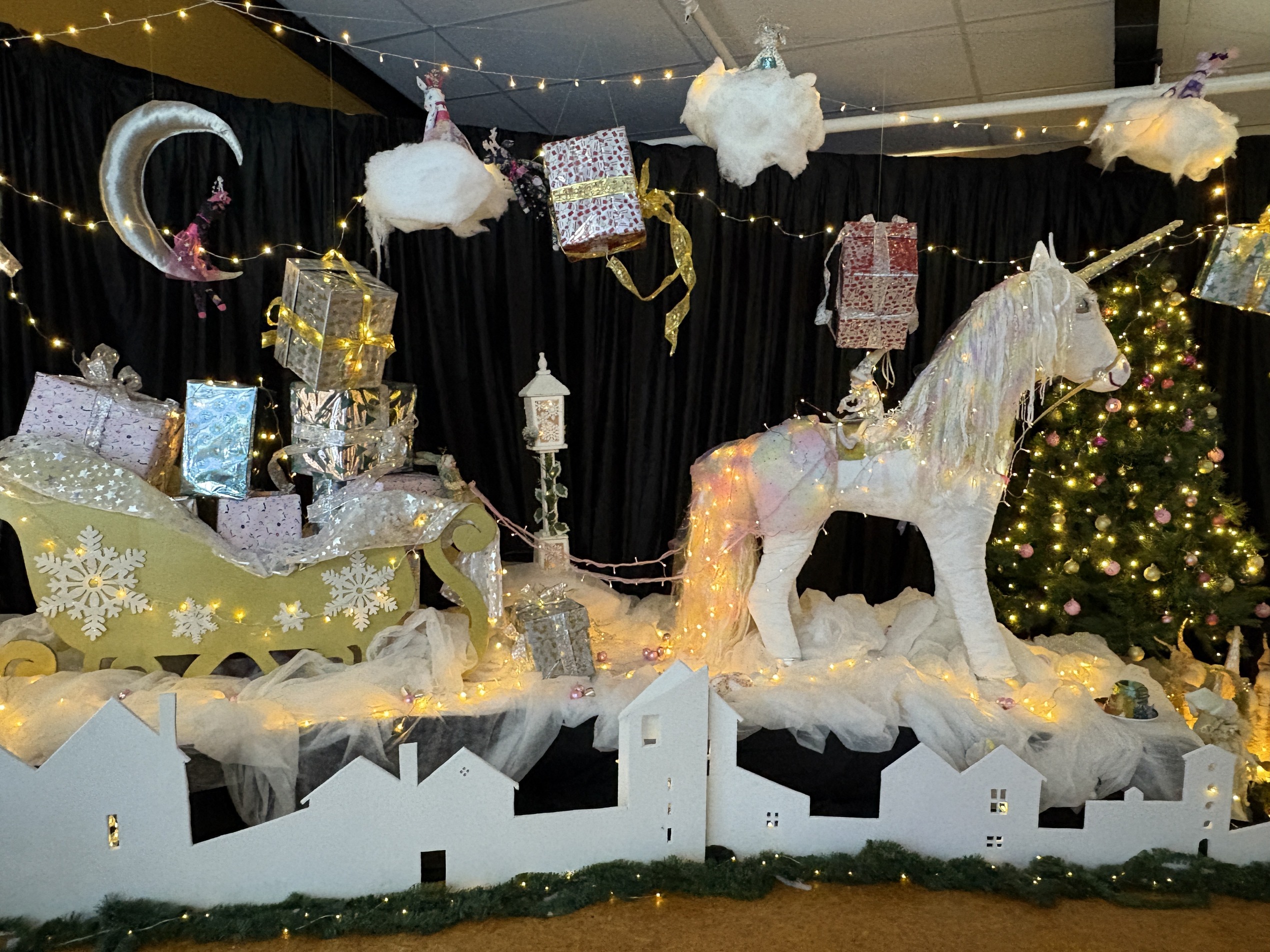 This year’s theme, Dreams of Christmas’, began with Elizabeth’s idea of featuring a unicorn and grew from there into an extravaganza filling the centre’s main hall with a with a series of imaginative scenes - from mermaids and unicorns to an ice igloo, Santa’s seat, and much more.