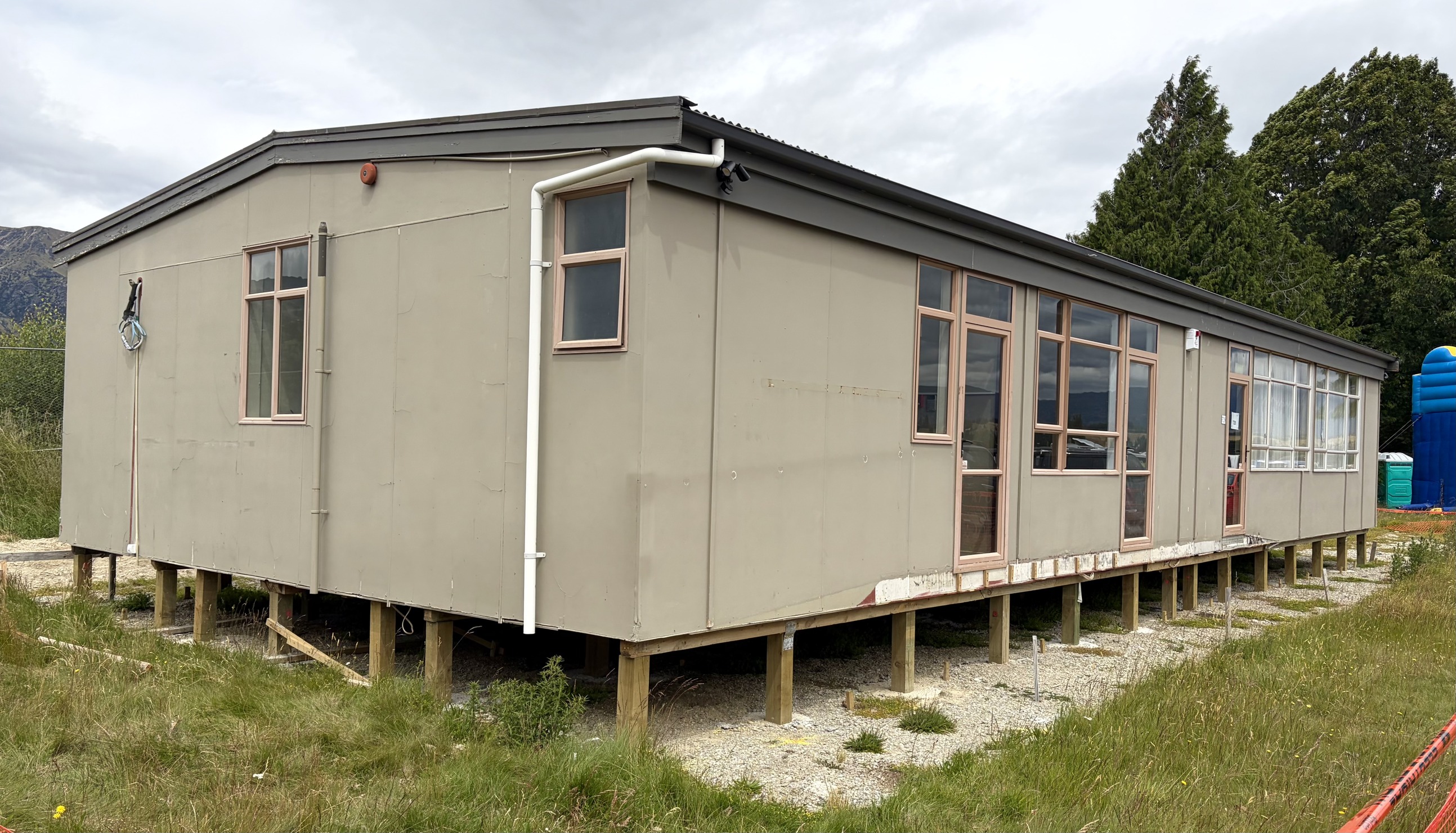 The new 155sqm community building is currently sitting on piles at the Hāwea Domain but finishing touches will be completed soon before it opens to the community. PHOTO: Supplied