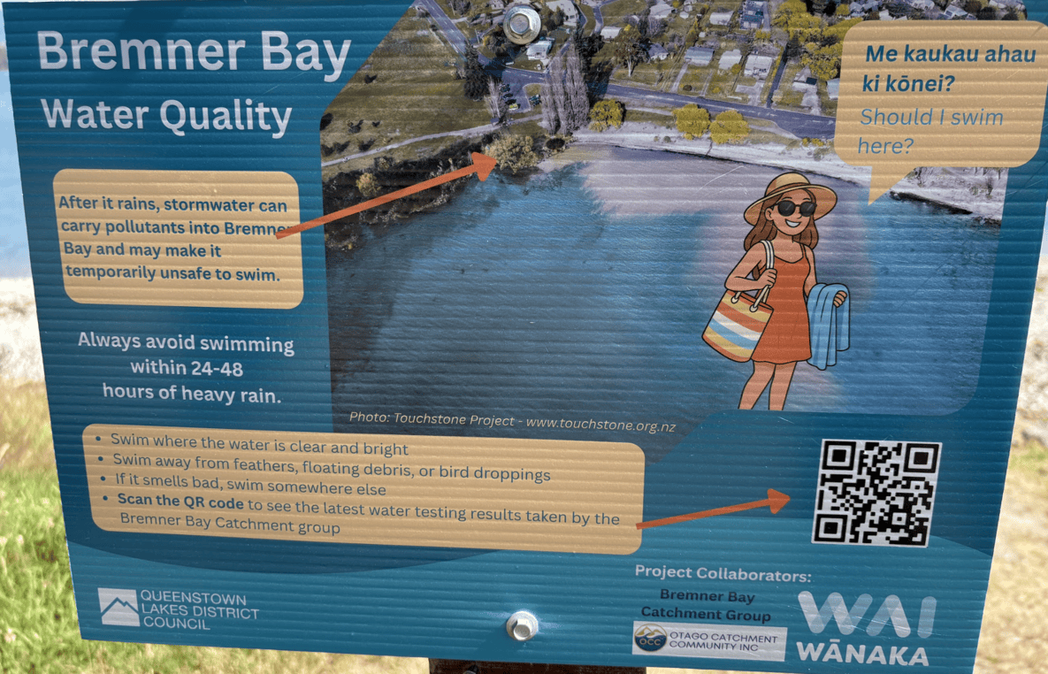 To check the latest Bremner Bay water quality testing results, use the QR codes at one of two signs at the beach, or click here.