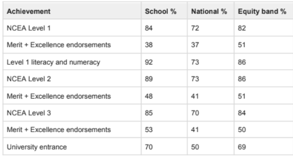 Nationally this figure was 73 percent, and in the same equity band it was 86 percent. Forty-eight percent of those students achieved endorsements (nationally 41 percent, same equity band 51 percent).
