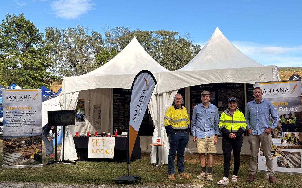 Santana Minerals sets up at the Central Otago A & P show in Omakau on Saturday February 14. IMAGE: FacebookThe developer of the Bendigo-Ophir gold project has secured the massive financial backing required to move from exploration to construction.
