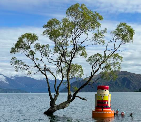 ‘Buoy Boy’, a Maritime New Zealand campaign with a floating reminder to ‘stay safe and know the rules’. PHOTO: Wānaka Lake Swimmers
