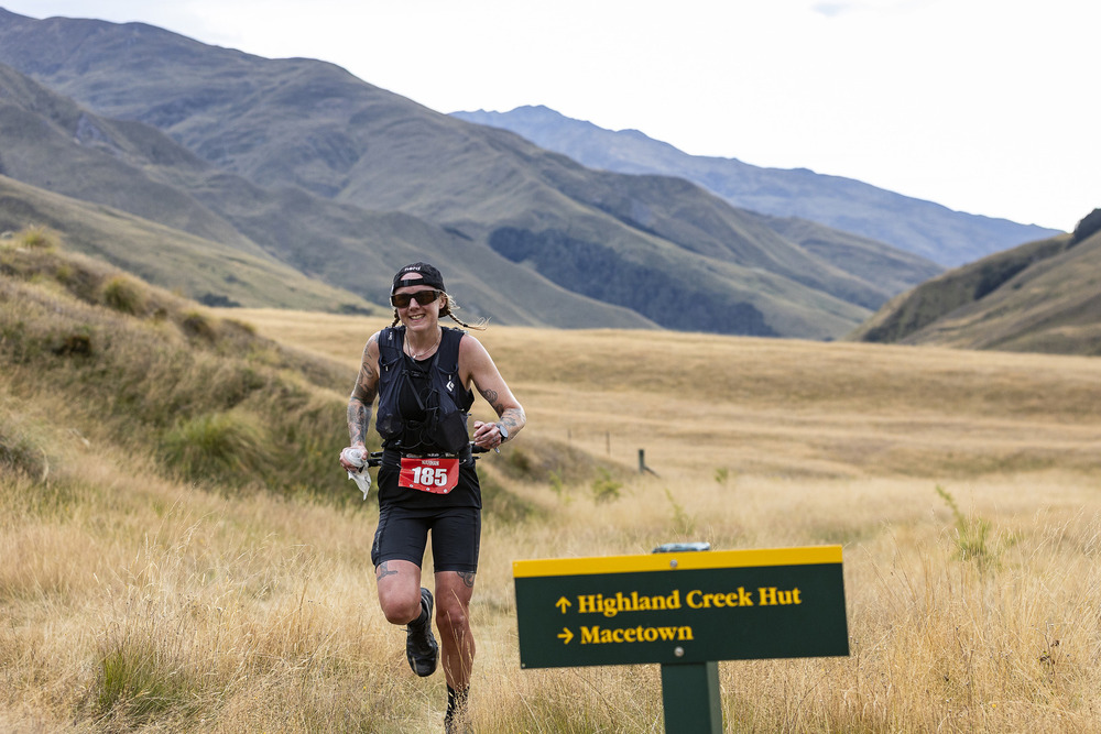 Queenstown local Hayley Holmes topped the podium in the women’s Miner’s Trail, posting a winning time of 01:39:04 with Dympna Boland second and Jess Hardwood third.