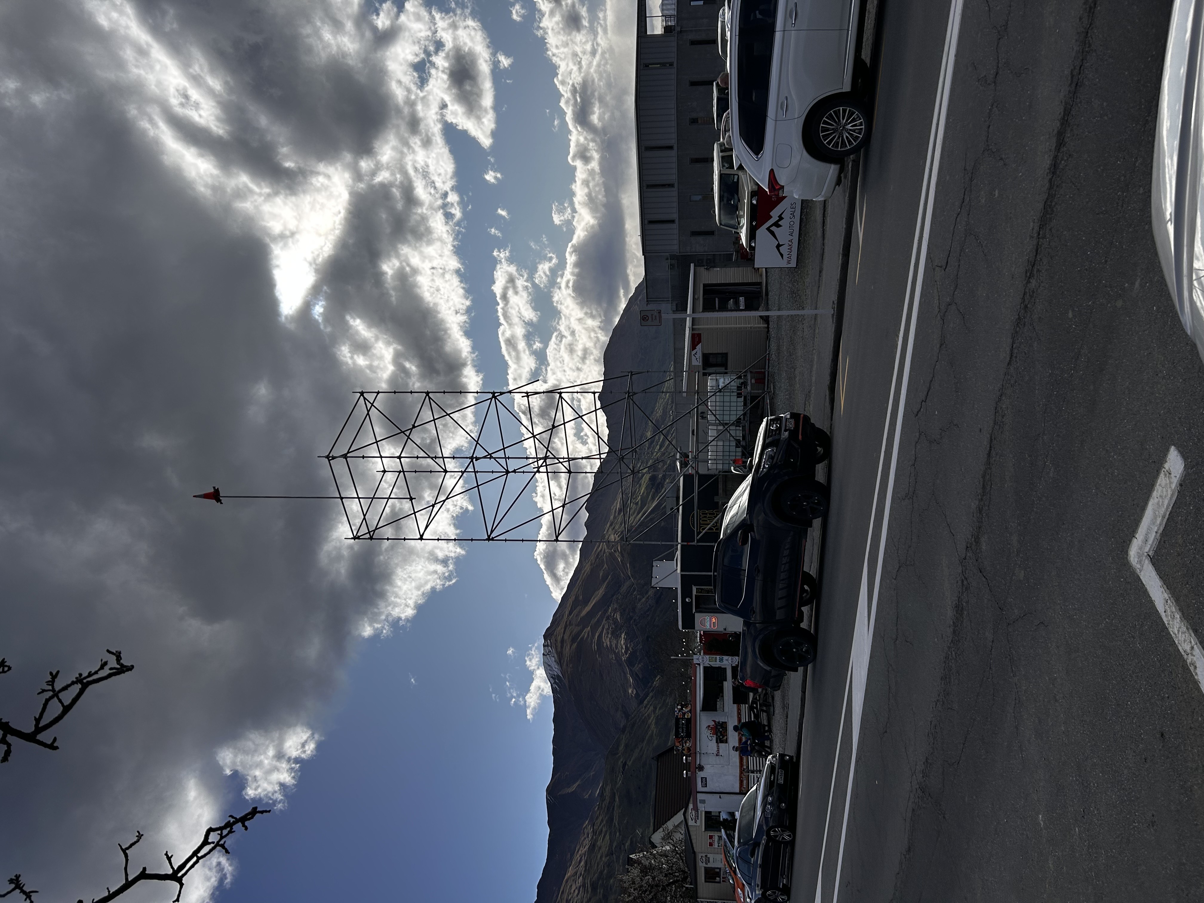 This 16.5 metre scaffolding was erected on Brownston Street to demonstrate the potential impact of proposed UIV height changes for the Wānaka Town Centre. Those changes have been approved and there is some provision to build even taller.