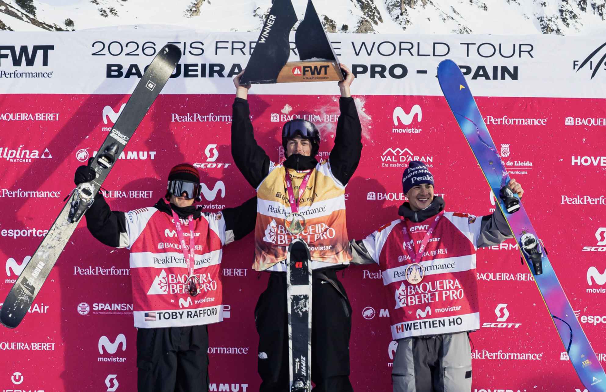 Ben Richards (centre).Wānaka’s Ben Richards (25) has opened the 2026 Freeride World Tour in spectacular fashion, taking first place in the Ski Men’s category at the Baqueira Beret Pro in Spain on Friday (January 16).