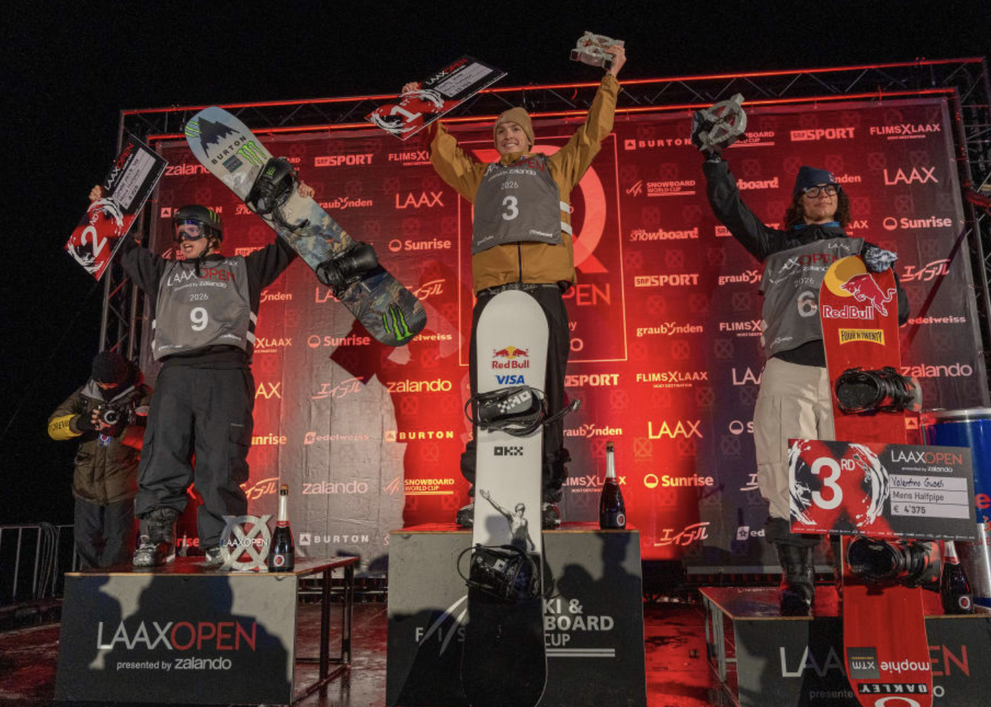 Cam Melville Ives (left) secured his first ever World Cup podium taking second place at the Laax Open. Wānaka’s Campbell (Cam) Melville Ives has claimed the first World Cup podium of his career, finishing second at the Snowboard Halfpipe final at the Laax Open in Switzerland yesterday (January 18).