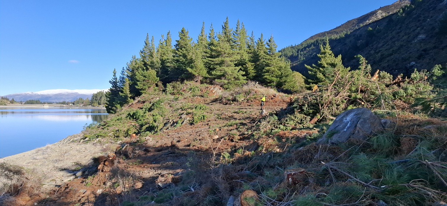 Workers take a break from wilding pine removal above Wānaka. The Upper Clutha Wilding Tree Group (UCWTG) is celebrating what it calls a “landmark 2024–2025 year”, highlighting major progress in its fight against invasive conifers.