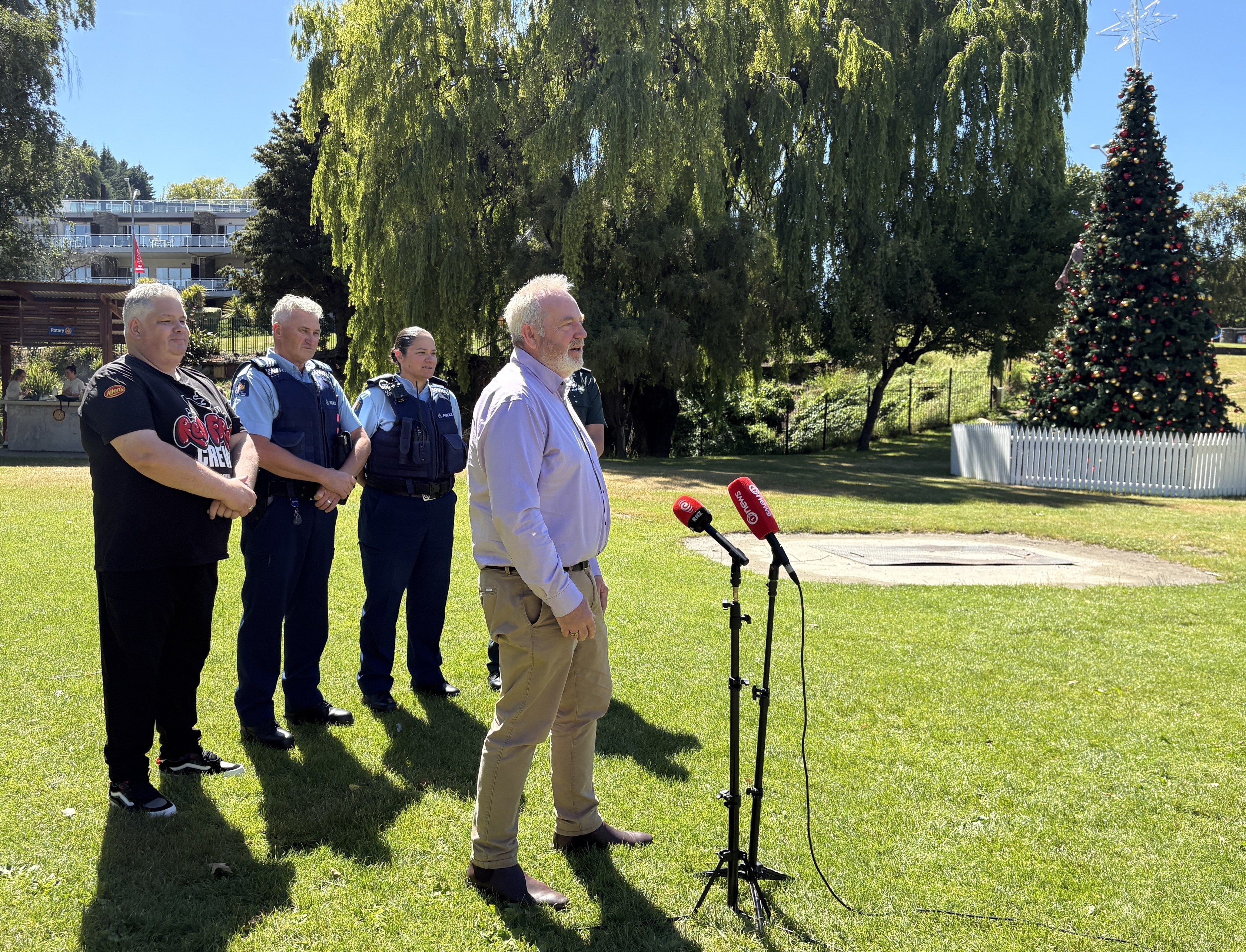 Queenstown Lakes mayor John Glover and representatives from, Police, Hato Hone St John and Red Frogs share key safety messages ahead of Wānaka’s New Year’s celebrations.An incoming surge of young people, alcohol and holiday crowds is putting the spotlight back on safety as the district heads into the New Year’s period.